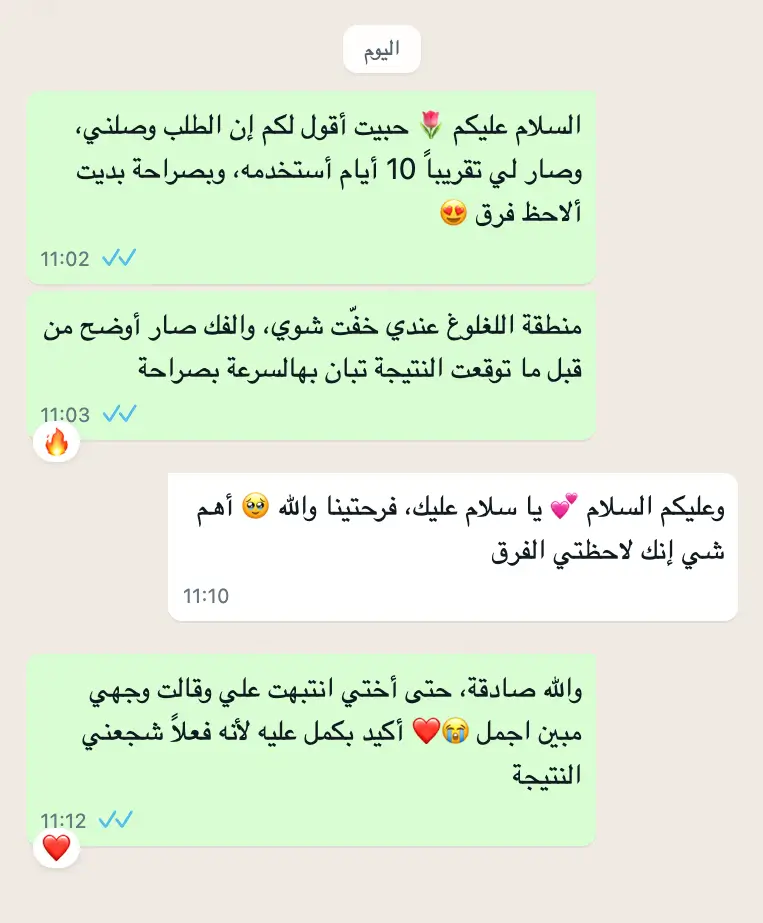 ما تتخيلون فرحتي الجهاز ذا غير حياتي حرفيًا اللغلوغ راح والبشرة صارت مشدودة بدون مشاكل ولا تعب شكرًا لكم الحمد الله نسيت فكرة العيادات و العمليات